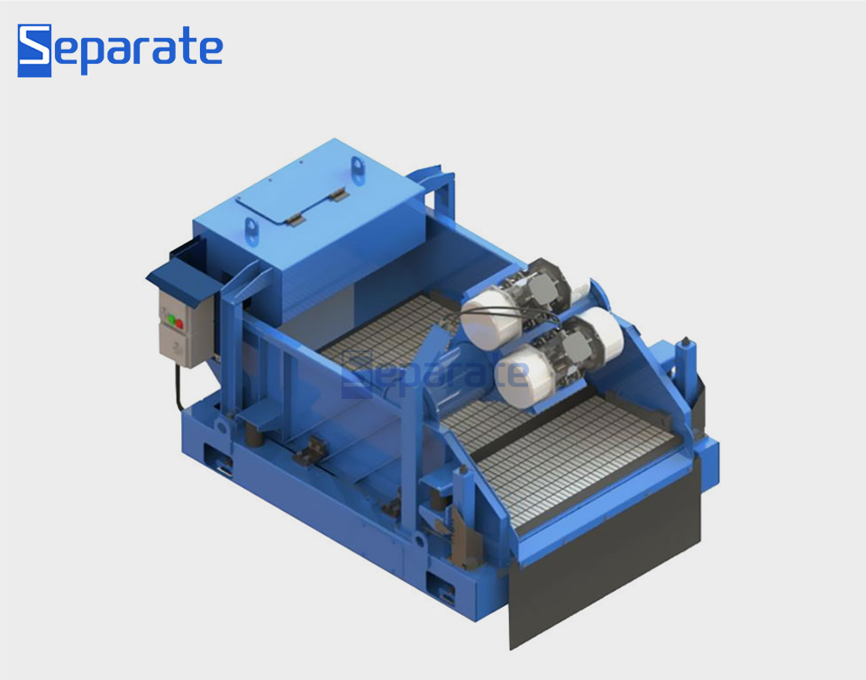 The vibrating screen from SEPARATE is the first stage of solid control equipment in the drilling purification system. It is capable of removing cuttings larger than 75μm from the drilling fluid, retaining the liquid with smaller particles in the lower tank, and then directing it to the next stage of solid control equipment for further processing.